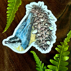 Greeting cards are blank inside. Each card features watercolor paintings of birds that can be found in the Pacific Northwest. Each painting includes animals, fungi, and/or plants that can be found in the same habitat. Within each card, organisms are all proportionately sized to each other. Species names written on the back. Unlimited edition.